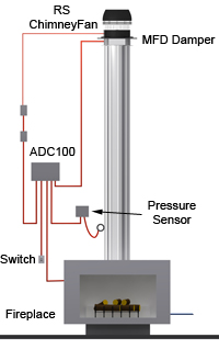 ADC100 Draft and Damper Control, a Pressure Sensor and a Chimney